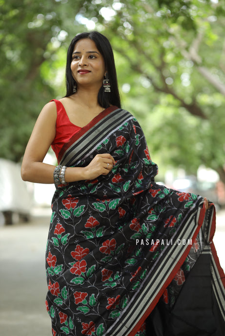 Cotton Sambalpuri Saree with Floral Ikat & Rudraksha Border – Pasapali