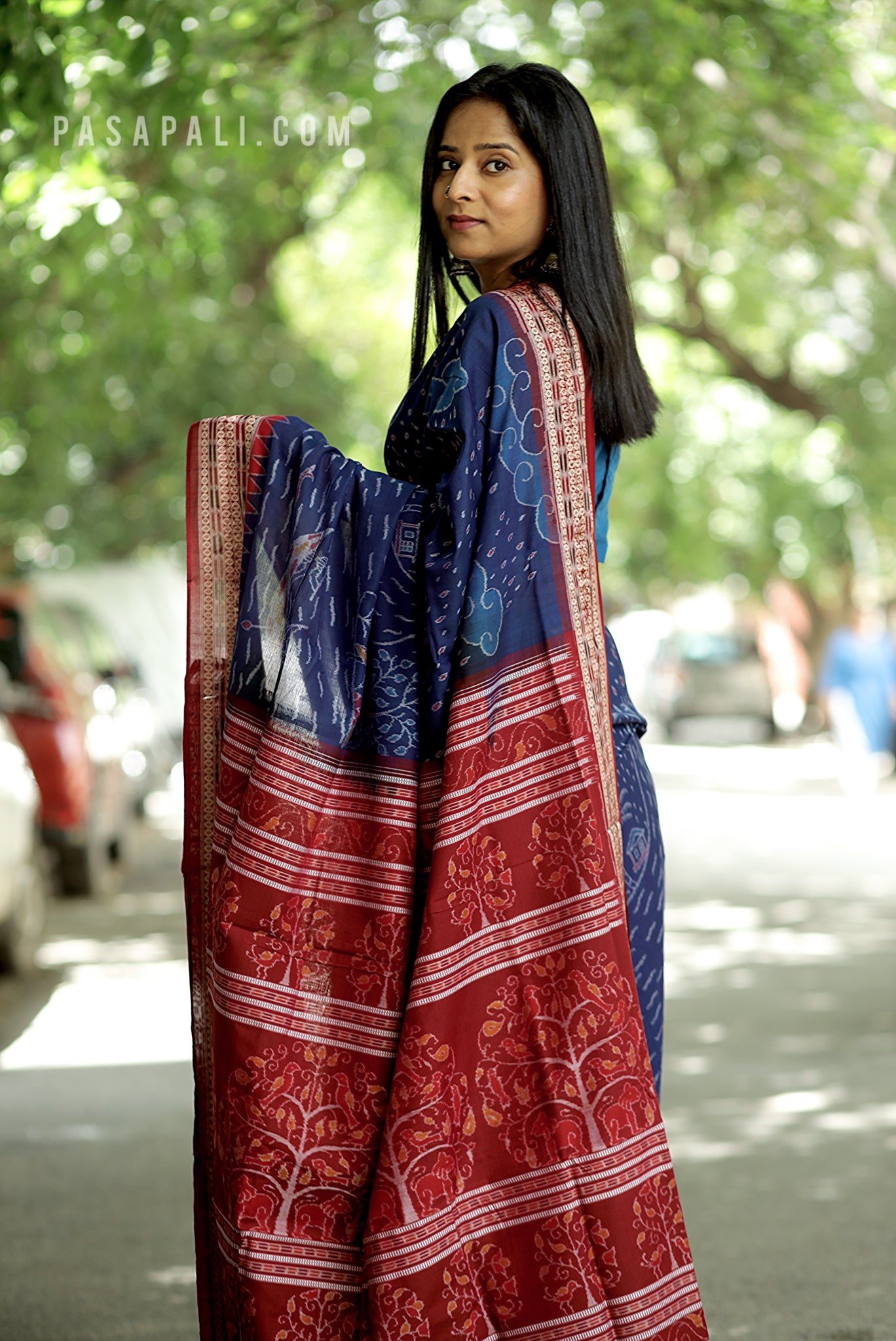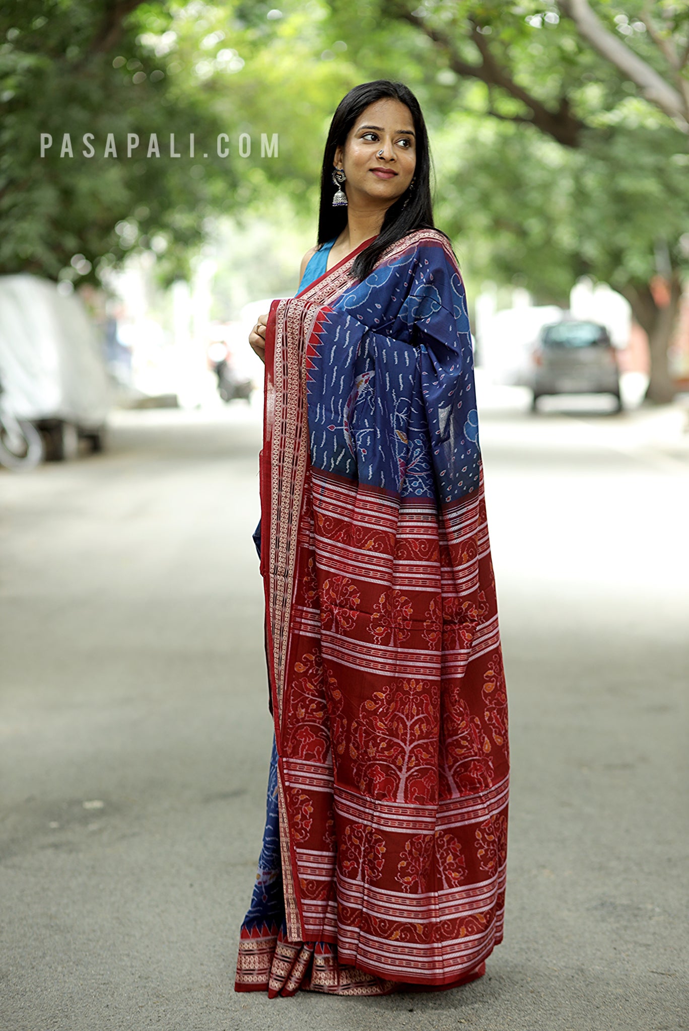 As an authentic handloom Sambalpuri saree, this piece embodies Odisha’s richest textile traditions, offering the depth of a traditional Ikat saree, the charm of a rural narrative, and the premium touch that Pasapali stands for. A timeless collectible for saree lovers and heritage enthusiasts alike.