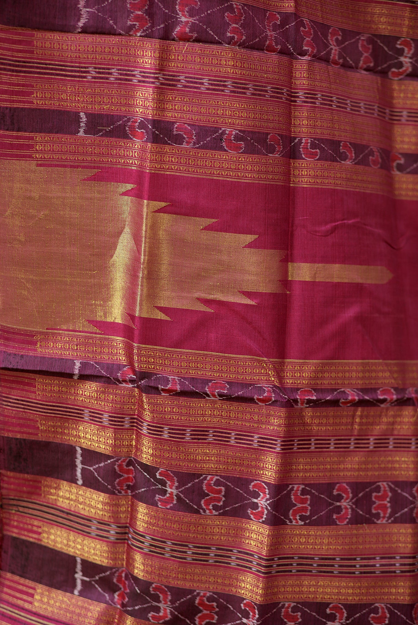 - Pin Marks: Sambalpuri cotton sarees often feature pin marks at equal distances along the top or bottom of the fabric, known as selvedge, reflecting the meticulous care taken during weaving.