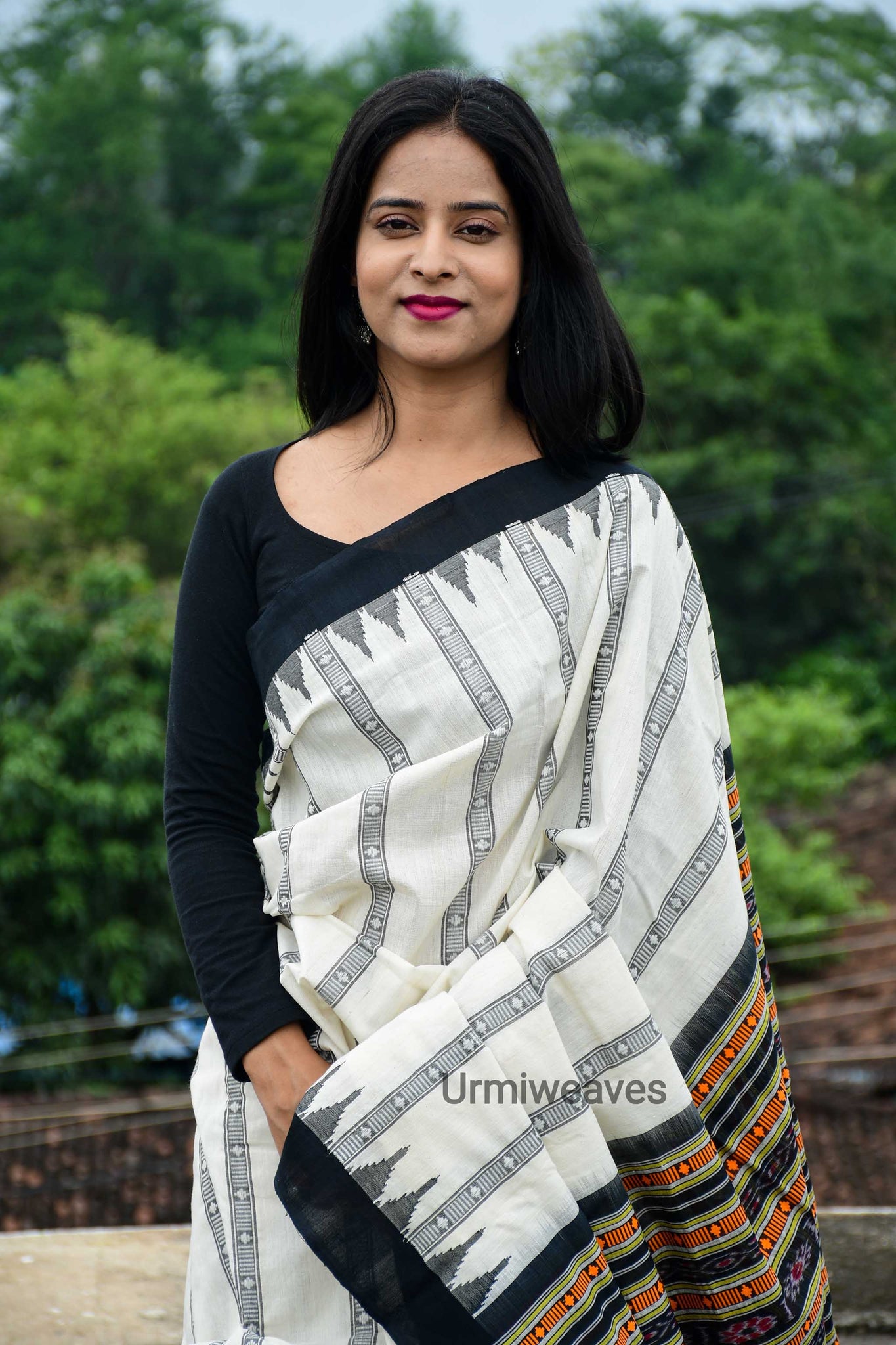 The Kotpad inspired premium khadi saree made with hand spun natural high density khadi fiber .