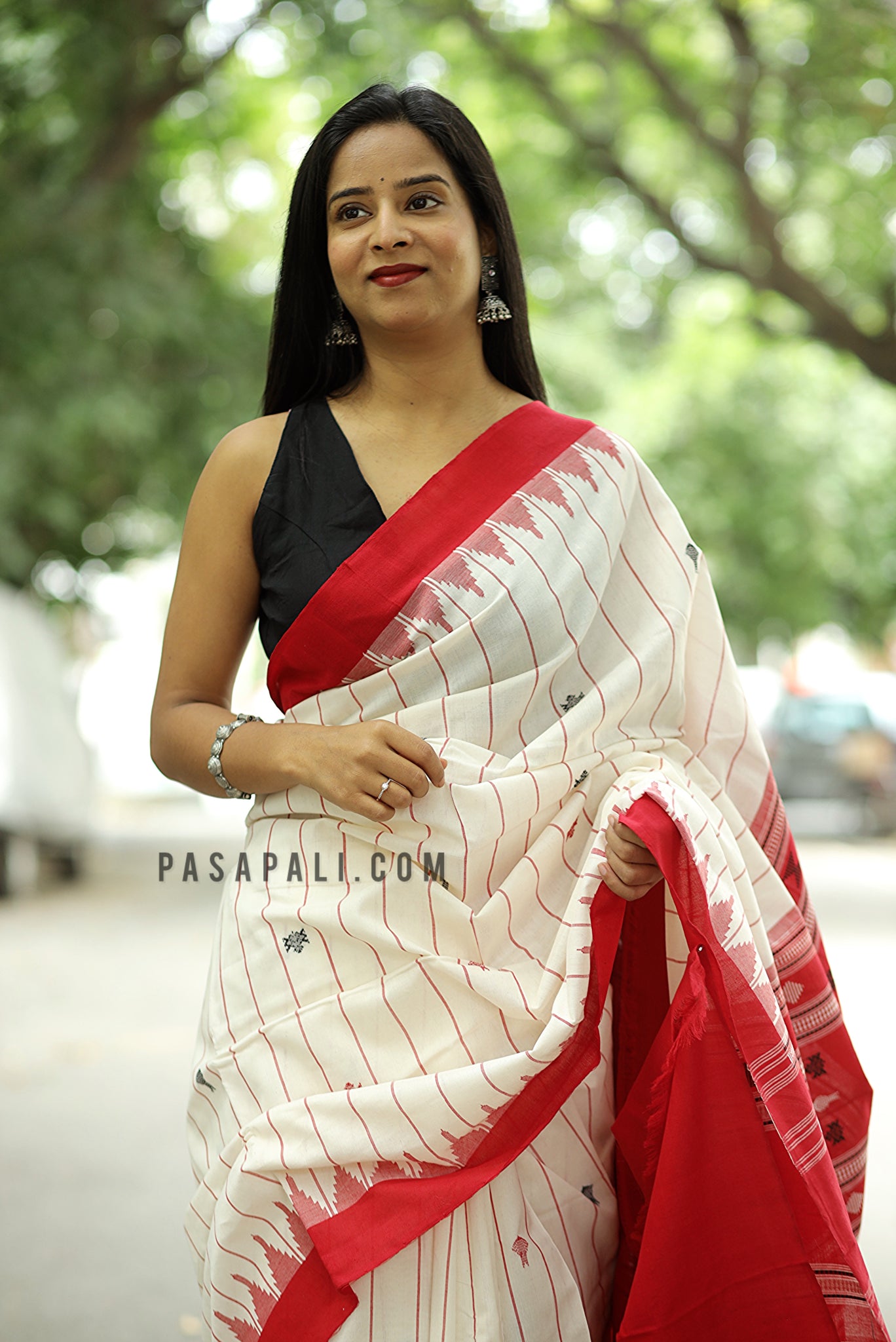The contrasting red Phoda Kumbha border and tribal motif pallu add a regal depth to its aesthetic, celebrating the confluence of simplicity and sophistication. Every thread reflects the patience and artistry of skilled weavers who carry forward the legacy of Odisha’s handloom heritage.