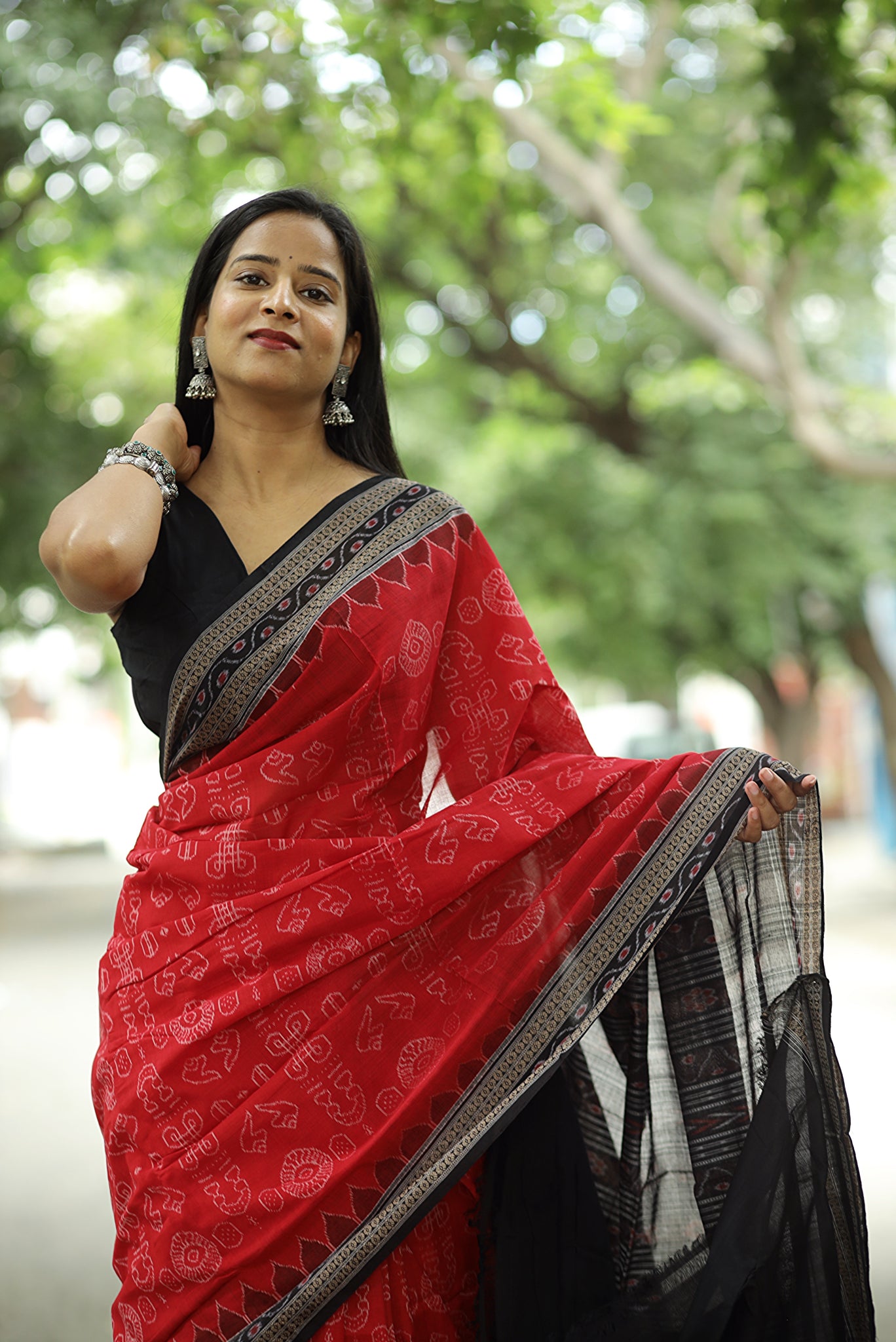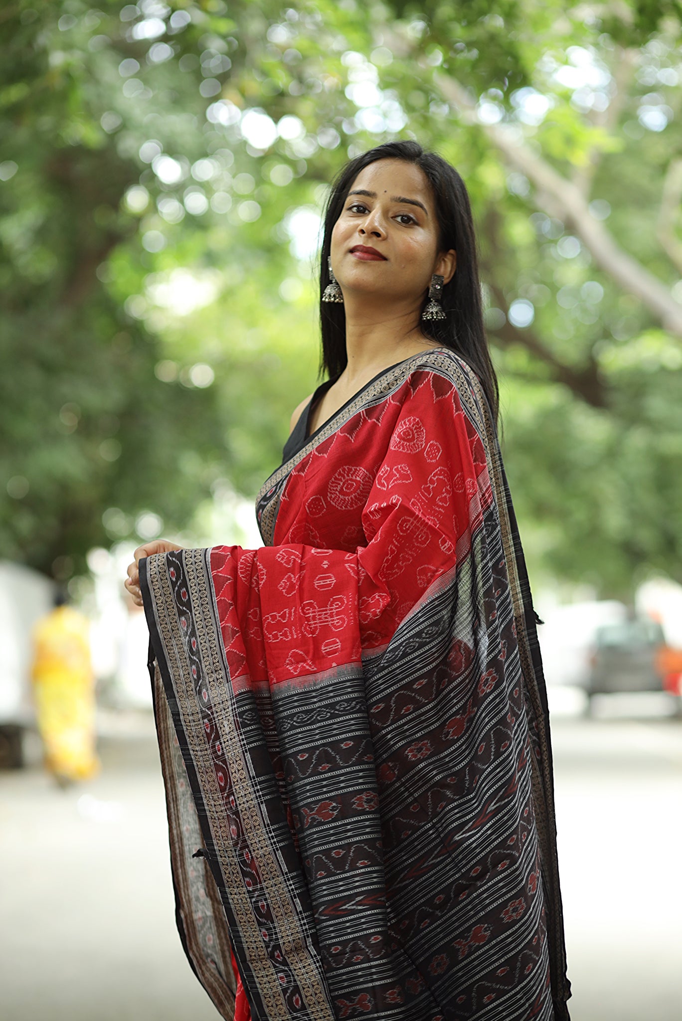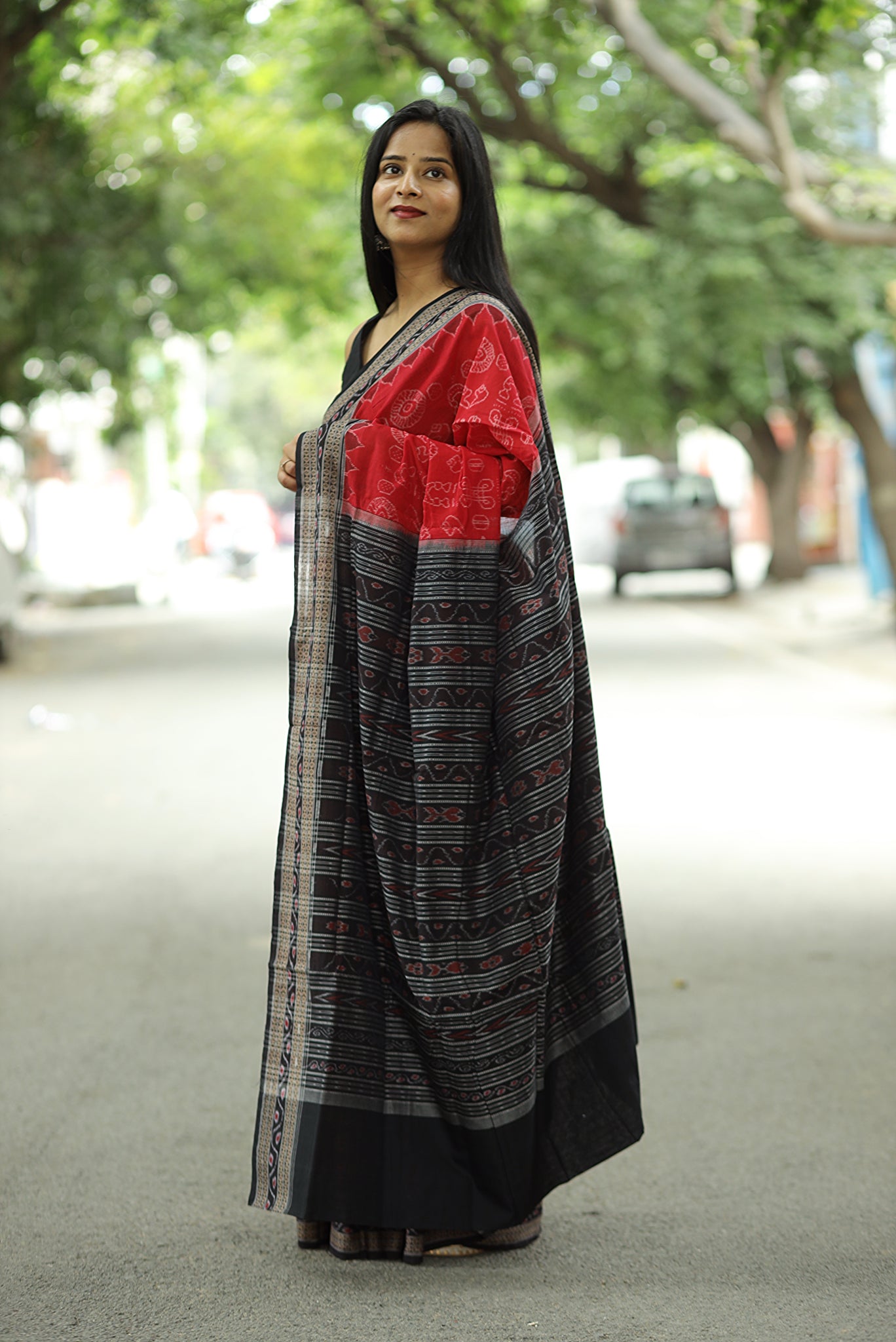 - Weave Technique: Traditional Sambalpuri Bandha (Ikat)