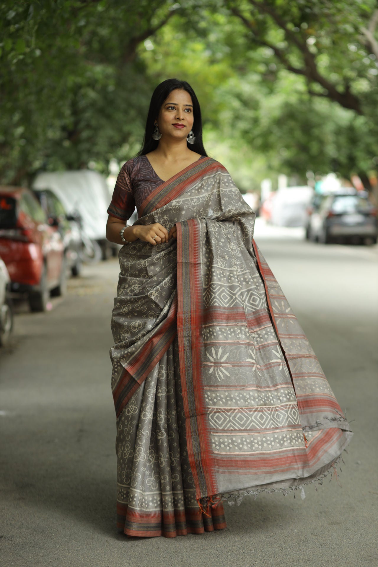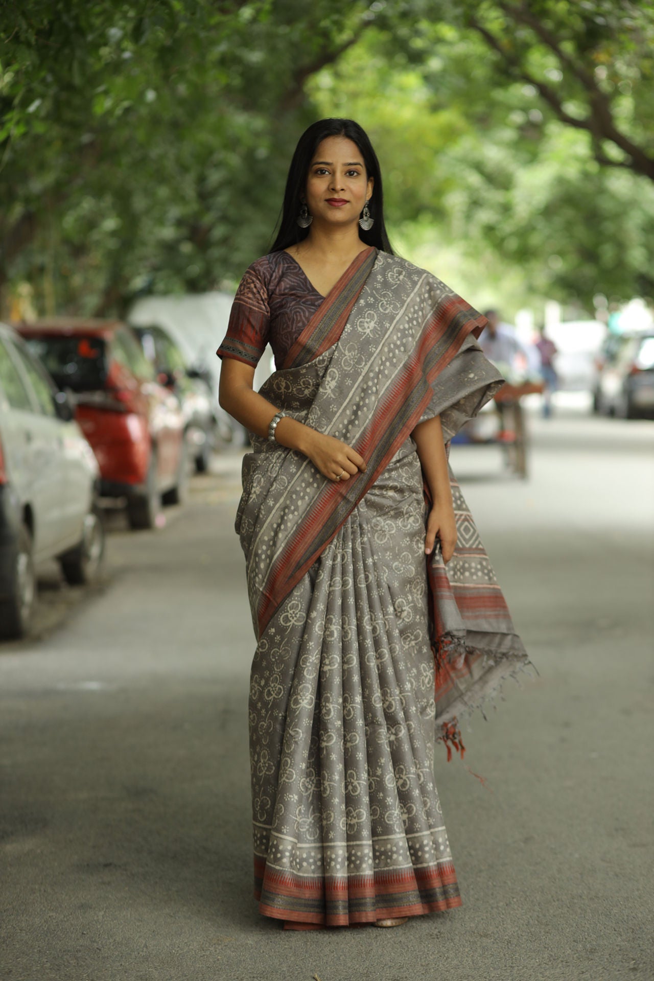 Discover the Maansi, an exquisite Pasapali's exclusive Vidarbha Border Block Print Fine Tussar Silk Saree. This isn't just a garment; it's a masterpiece that perfectly blends traditional art with contemporary design, making it an unparalleled addition to your collection. At Pasapali, we carry forward the legacy of "Urmiweaves" by bringing you authentic GI Handloom (where applicable, confirm GI for Vidarbha borders or specific Tussar silk) artistry, ensuring each handcrafted saree is a testament to our commitment to premium craftsmanship. When you drape this saree, you're not just wearing fabric; you're embracing a cultural emblem, a piece of history that speaks to your unique sense of style and appreciation for heirloom quality.