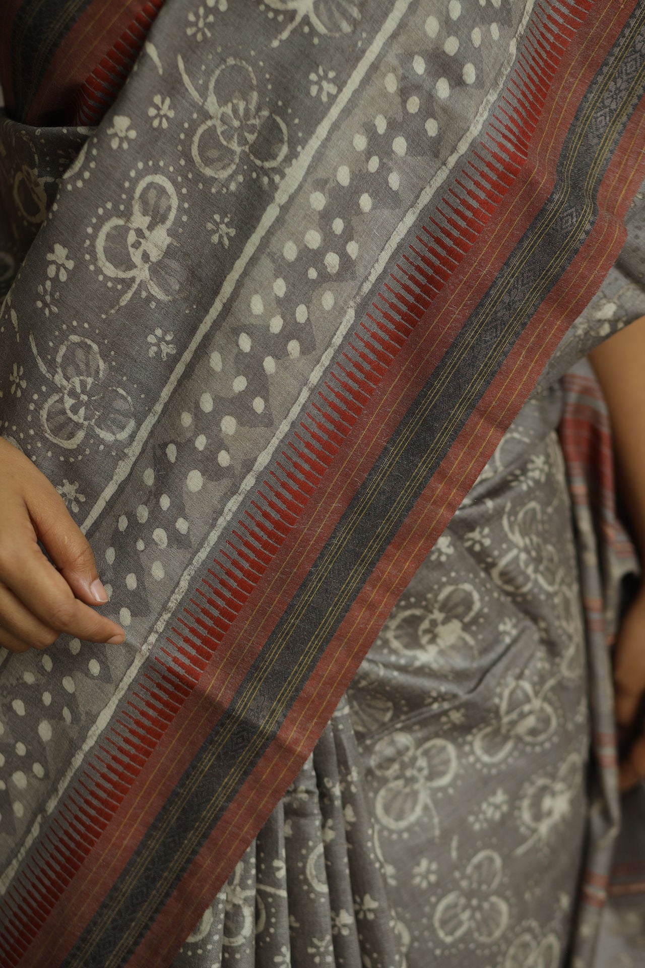 Subtle irregularities in the body & border of the saree, a dance of uniqueness and handcrafted charm.