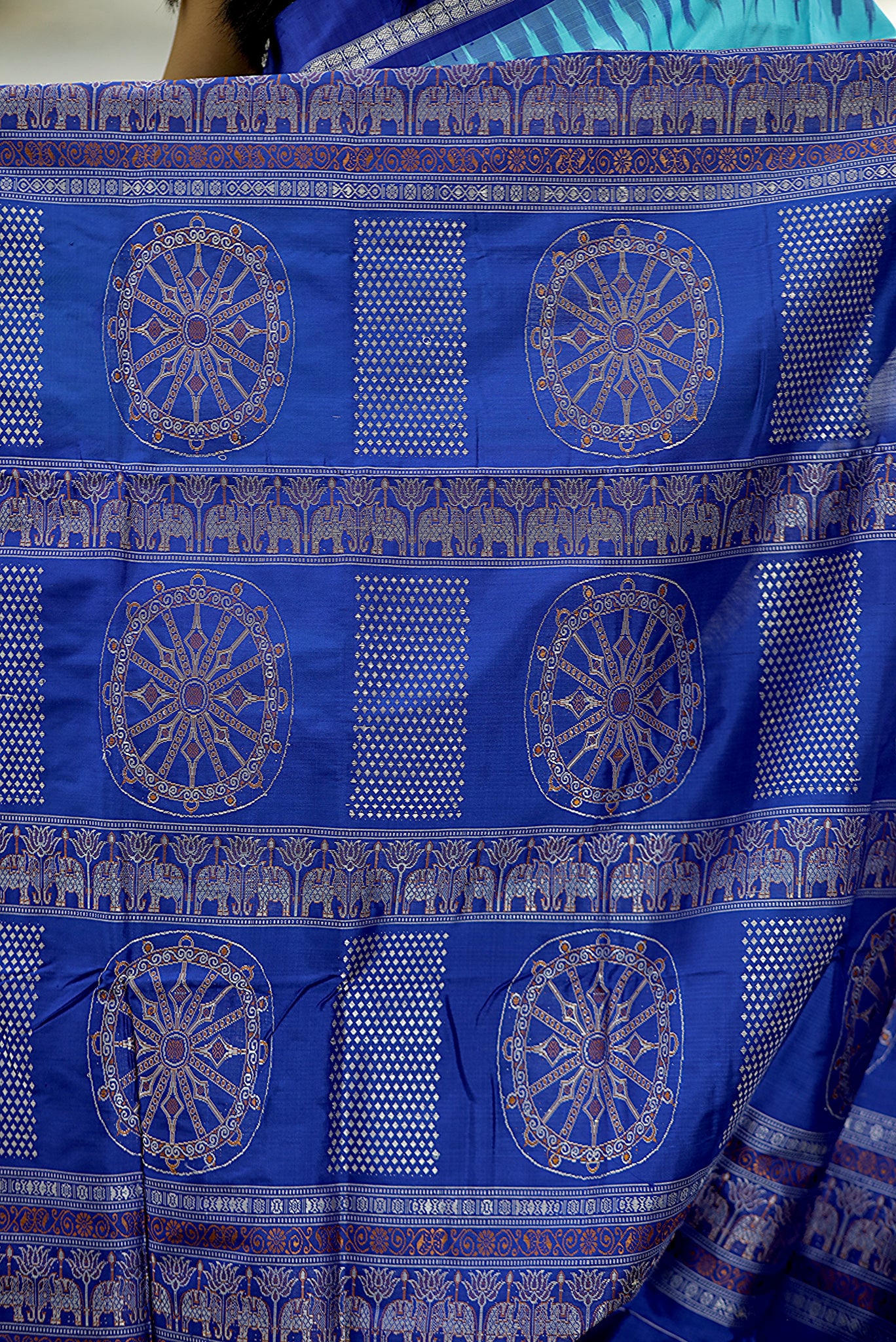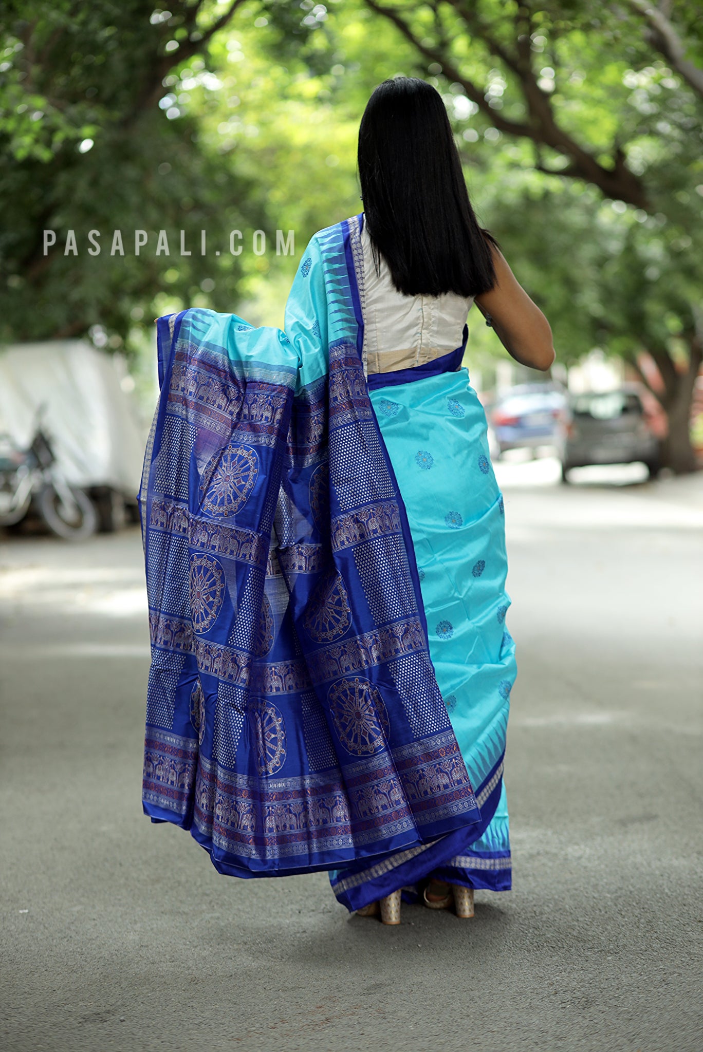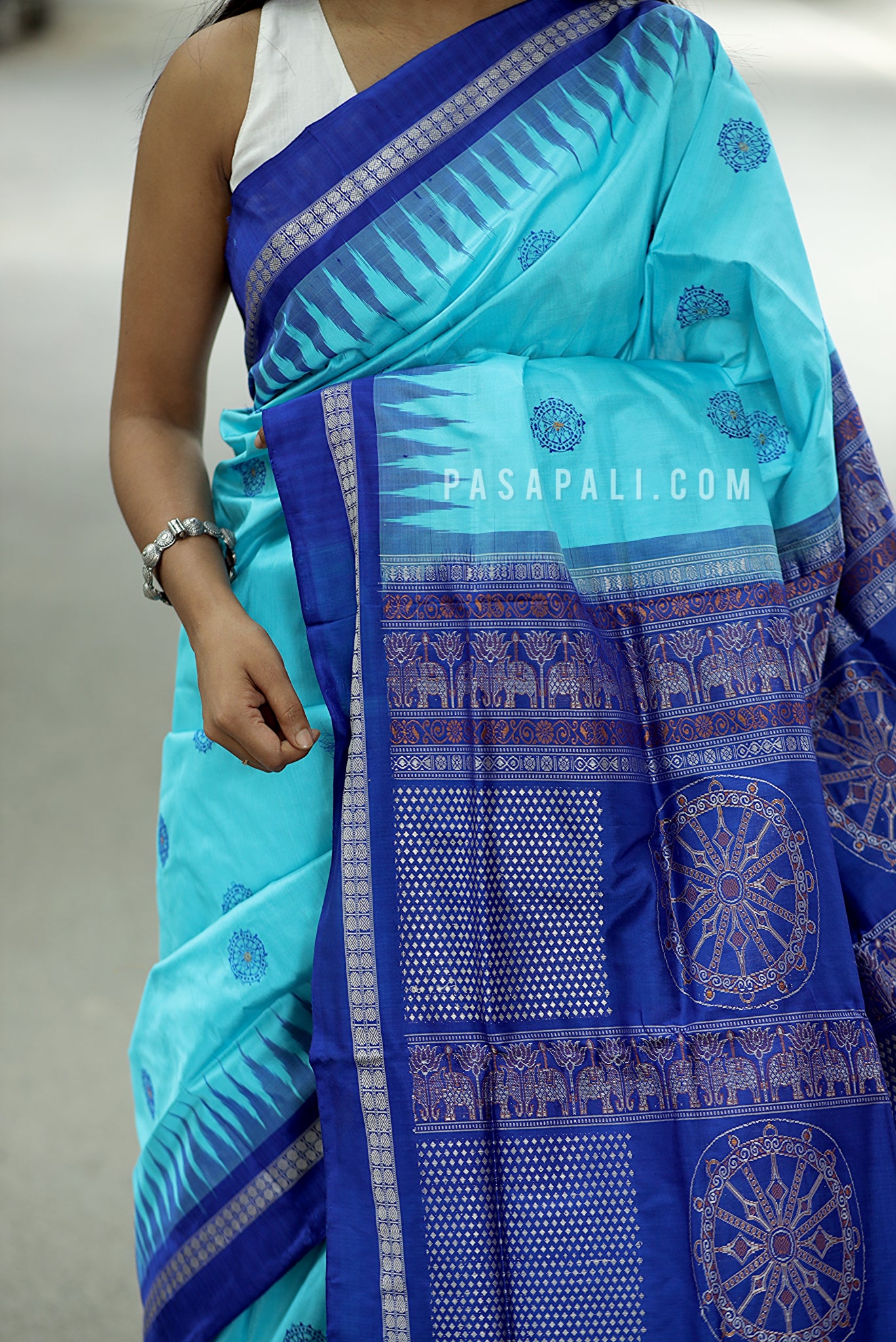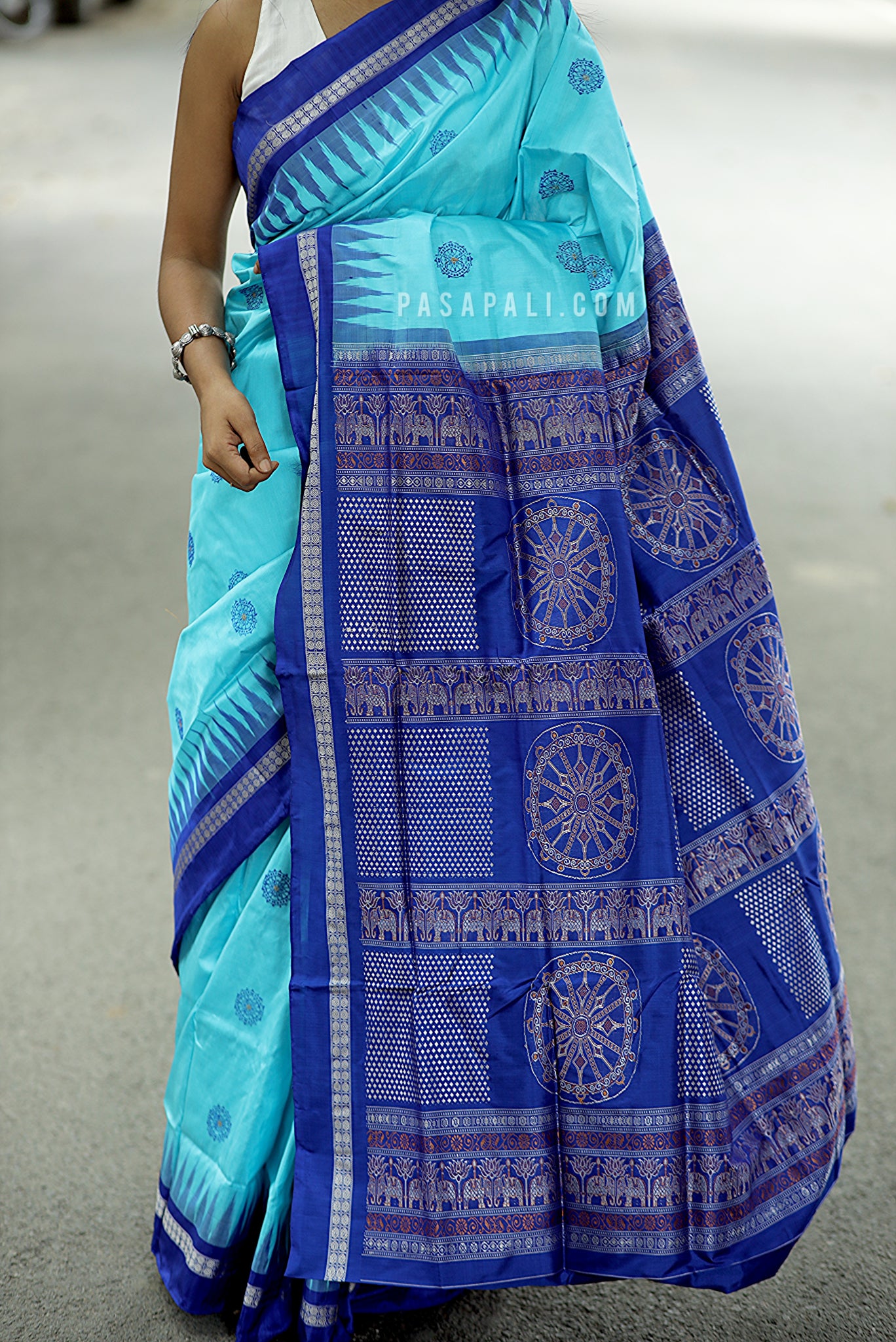 | Product Name | Sky Blue Chakra Buti Mulberry Silk Sambalpuri Saree |