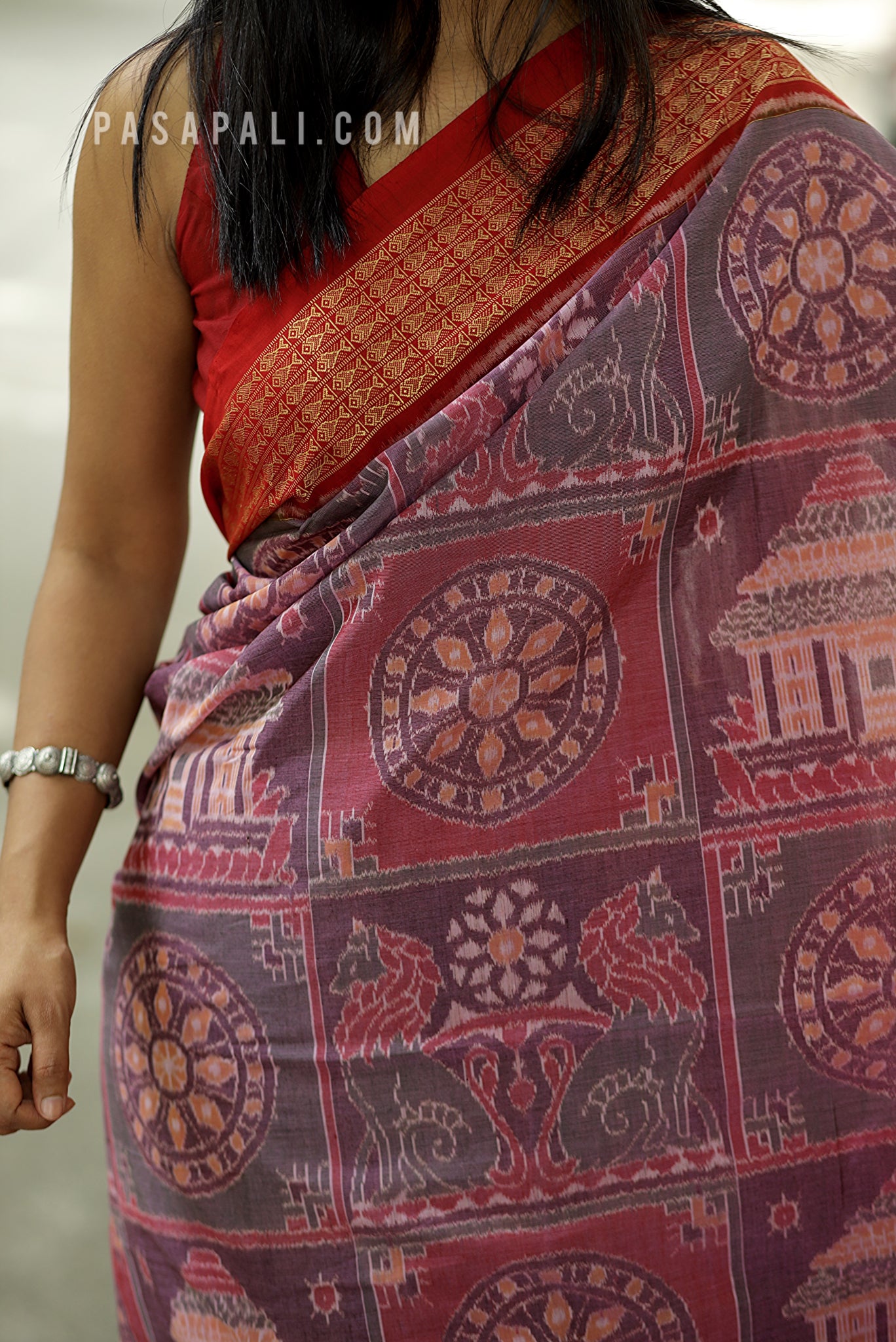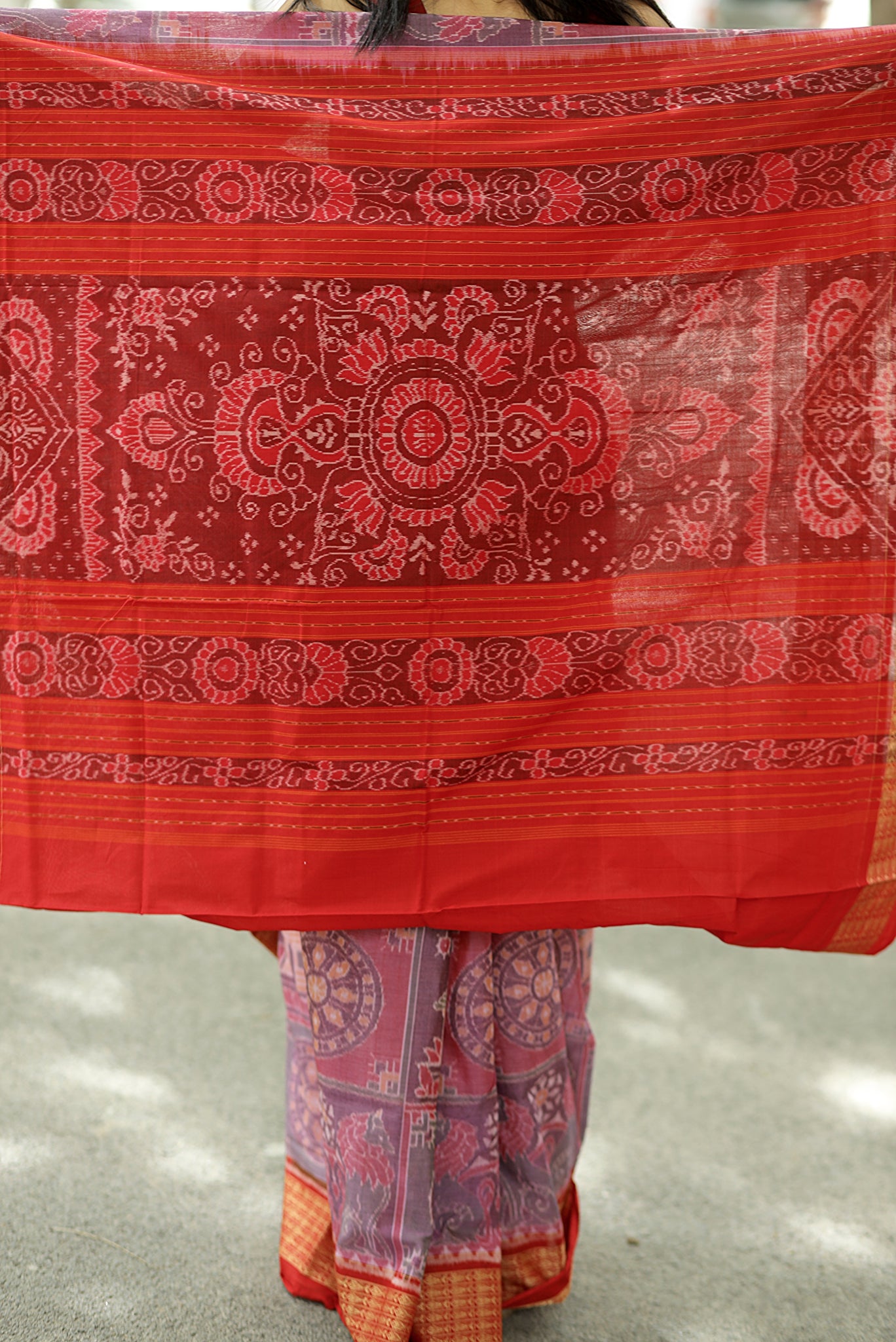 Crafted in breathable, high-quality cotton with a refined 120/120 thread count, this saree is perfect for festive wear, temple visits, cultural celebrations, and everyday elegance. As an authentic handloom Sambalpuri saree from the famed weaving clusters of Odisha, it embodies timeless craftsmanship, comfort, and heritage.