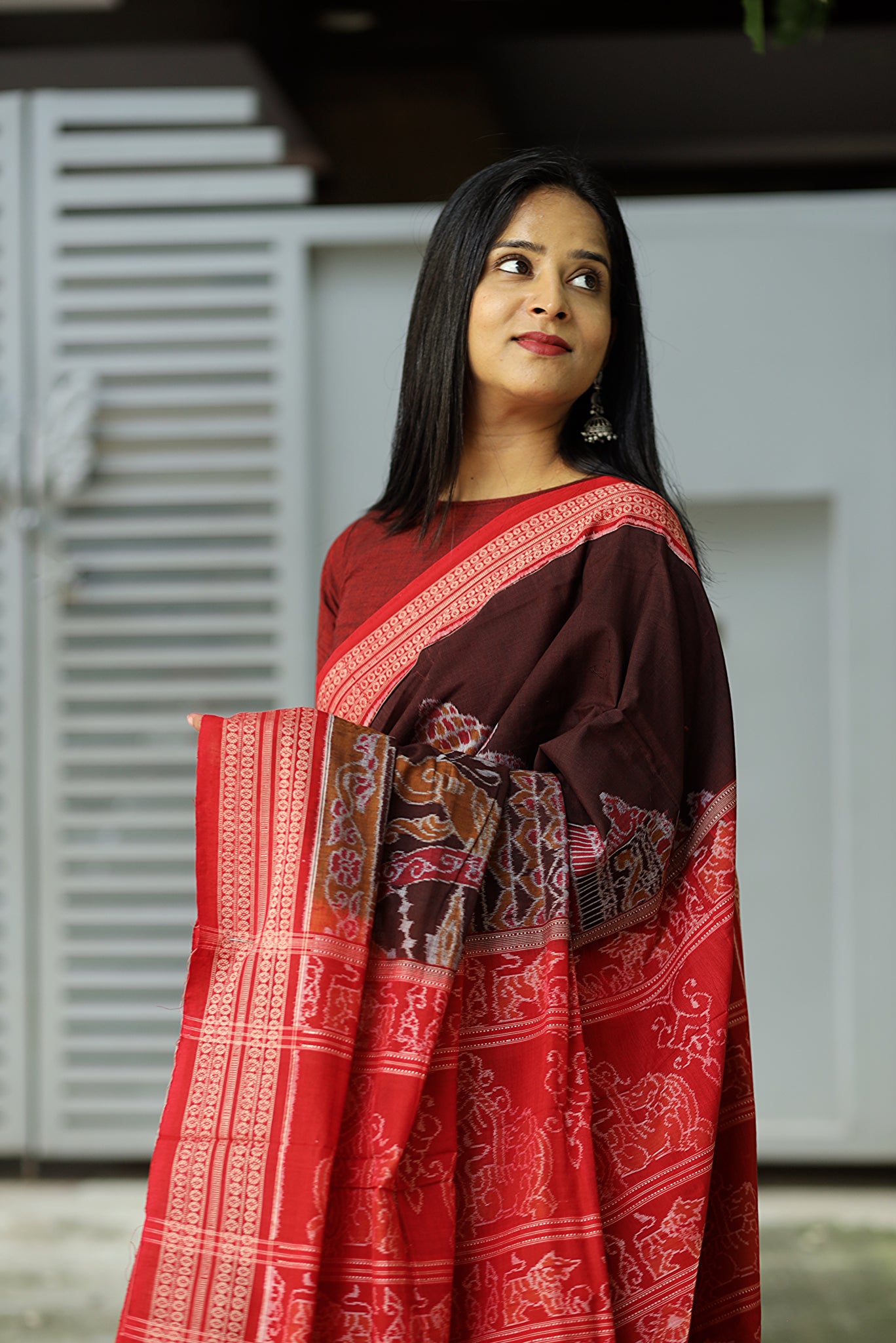 Made from pure, breathable cotton with a refined texture, this saree embodies both comfort and cultural richness. Perfect for cultural events, festive gatherings, pujas, and collectors of traditional Ikat sarees, this handloom Sambalpuri saree is a timeless tribute to Odisha’s artistic legacy.