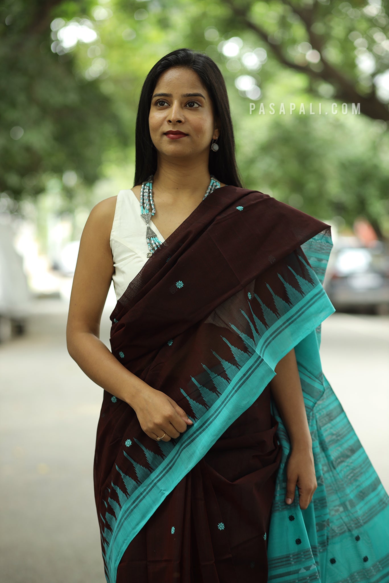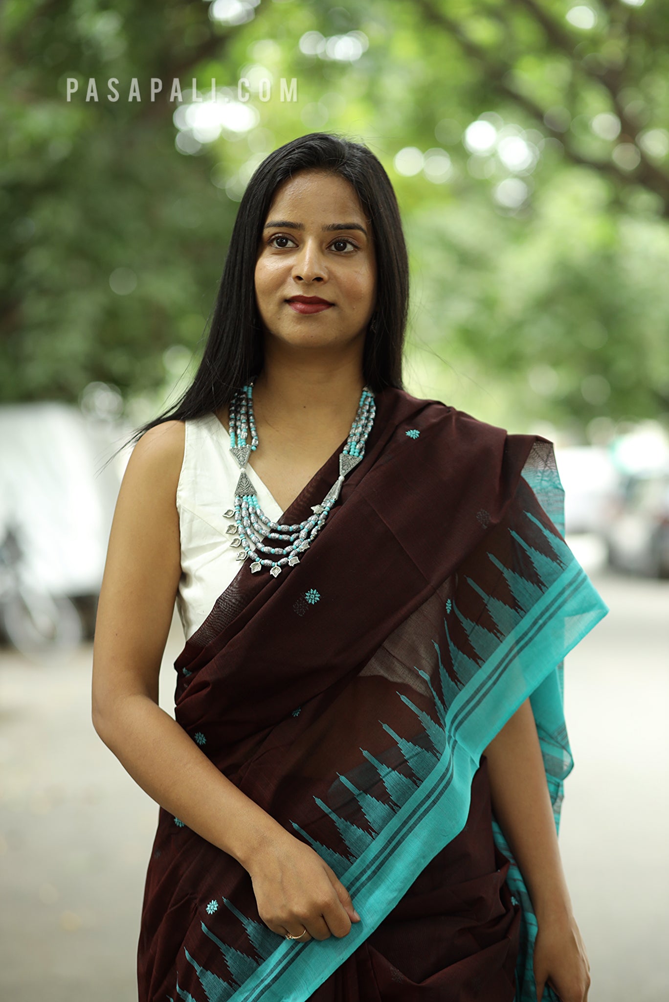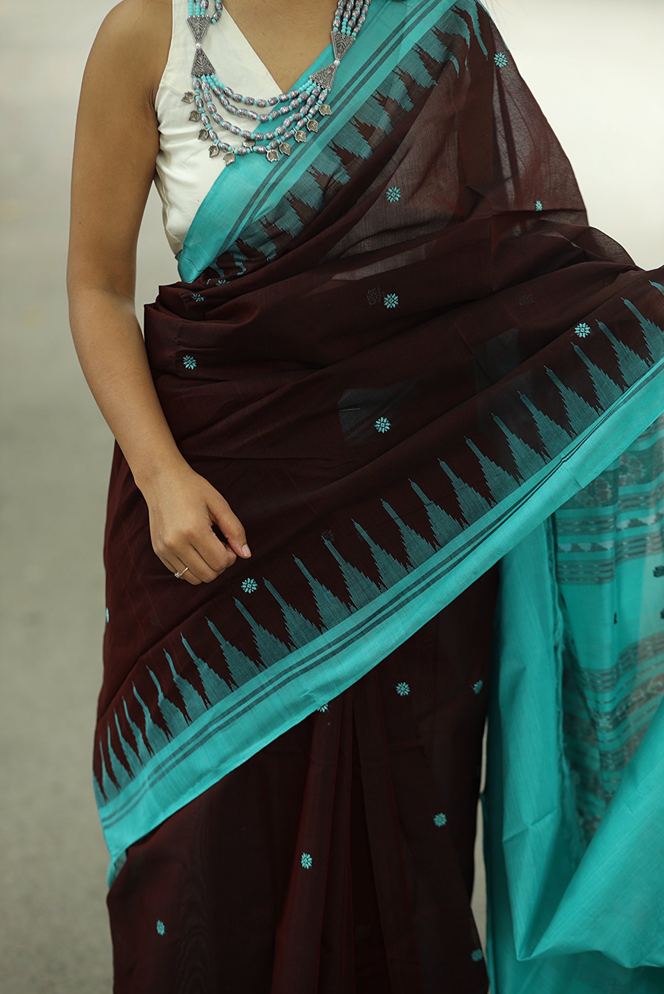 If you value heritage, authenticity, and artistry, this dark brown and teal Sambalpuri cotton saree is a masterpiece worth owning—versatile enough for everyday elegance yet rich enough for special occasions.